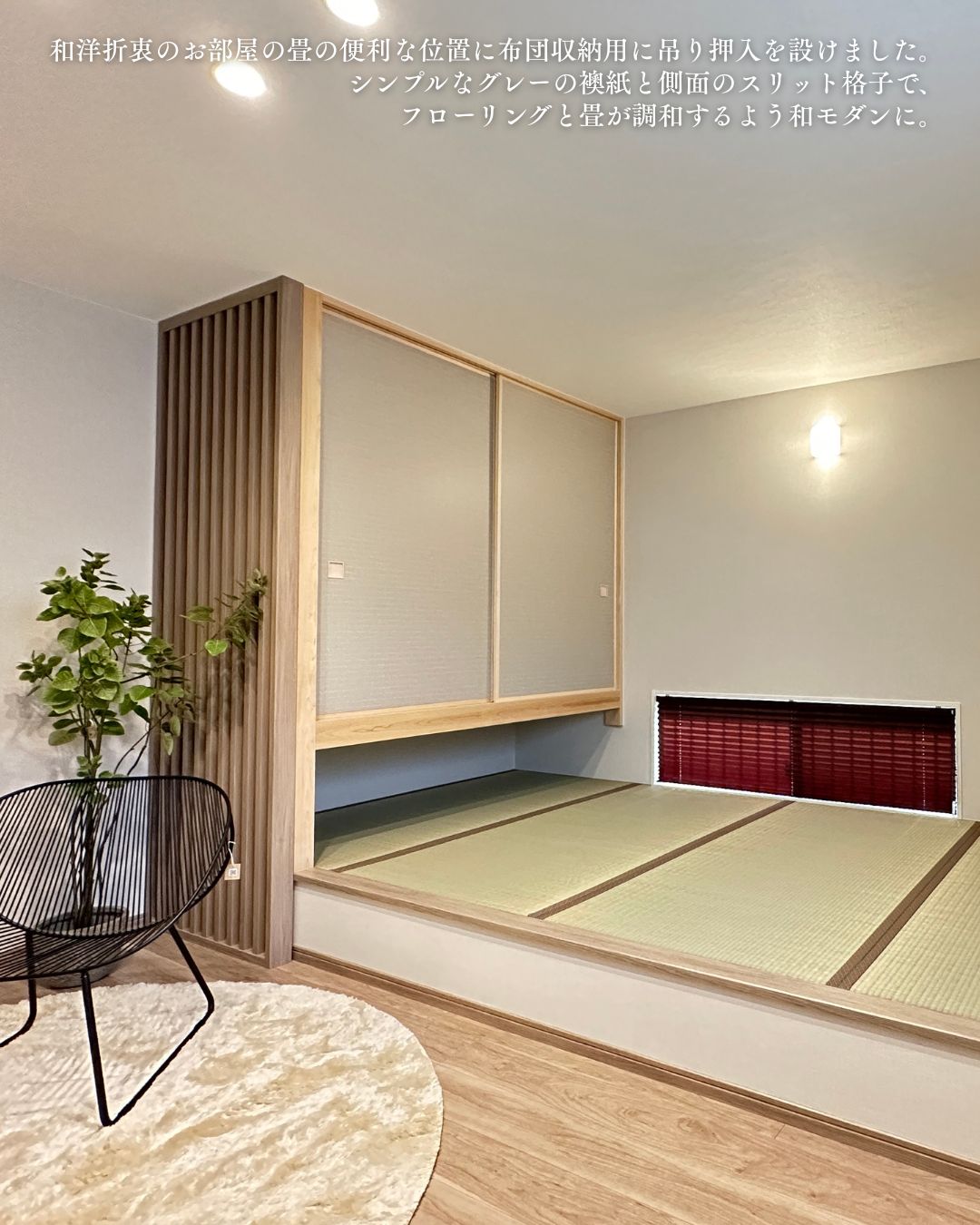 フローリングと畳が調和する和モダンな空間に仕上げました。