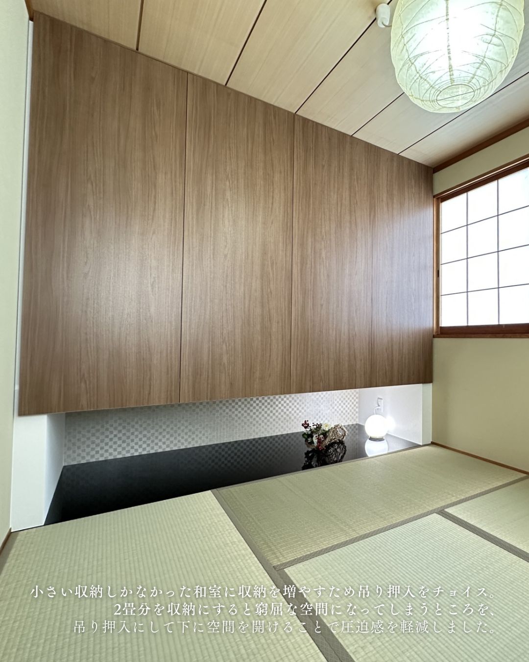 押入を床から浮かせて、収納部分の下を開けることで、圧迫感が軽減され、お部屋が広く感じられます。